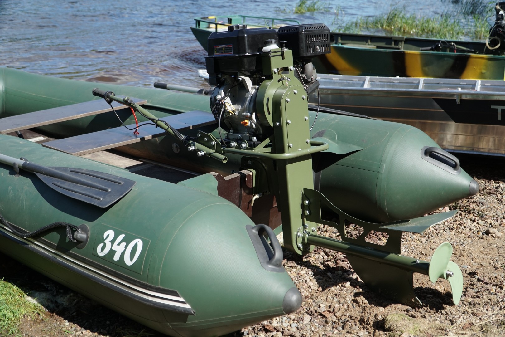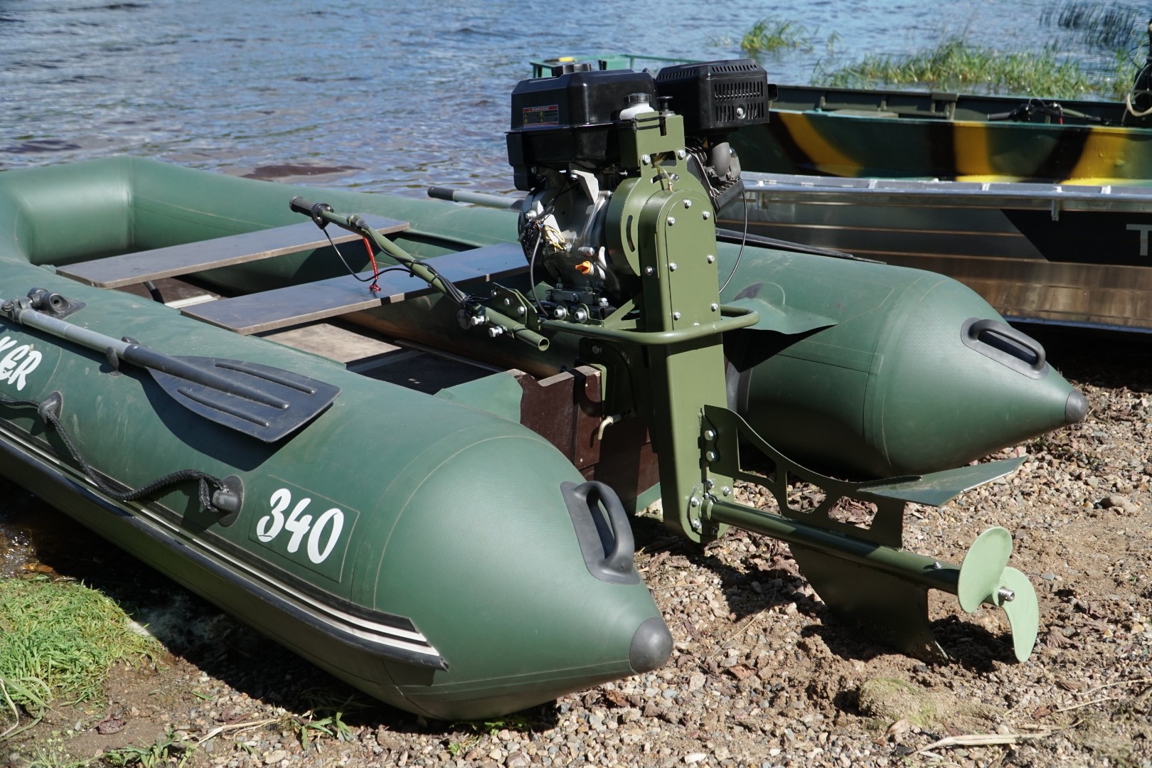 Мотор-болотоход "Бурлак-М2" предназначен для установки на любую лодку грузоподъёмностью от 120 кг со стандартным транцем (высота транцевой доски 380 - 400 мм, толщина - до 55 мм). Подходит для эксплуатации, как на металлических, так и на надувных лодках.