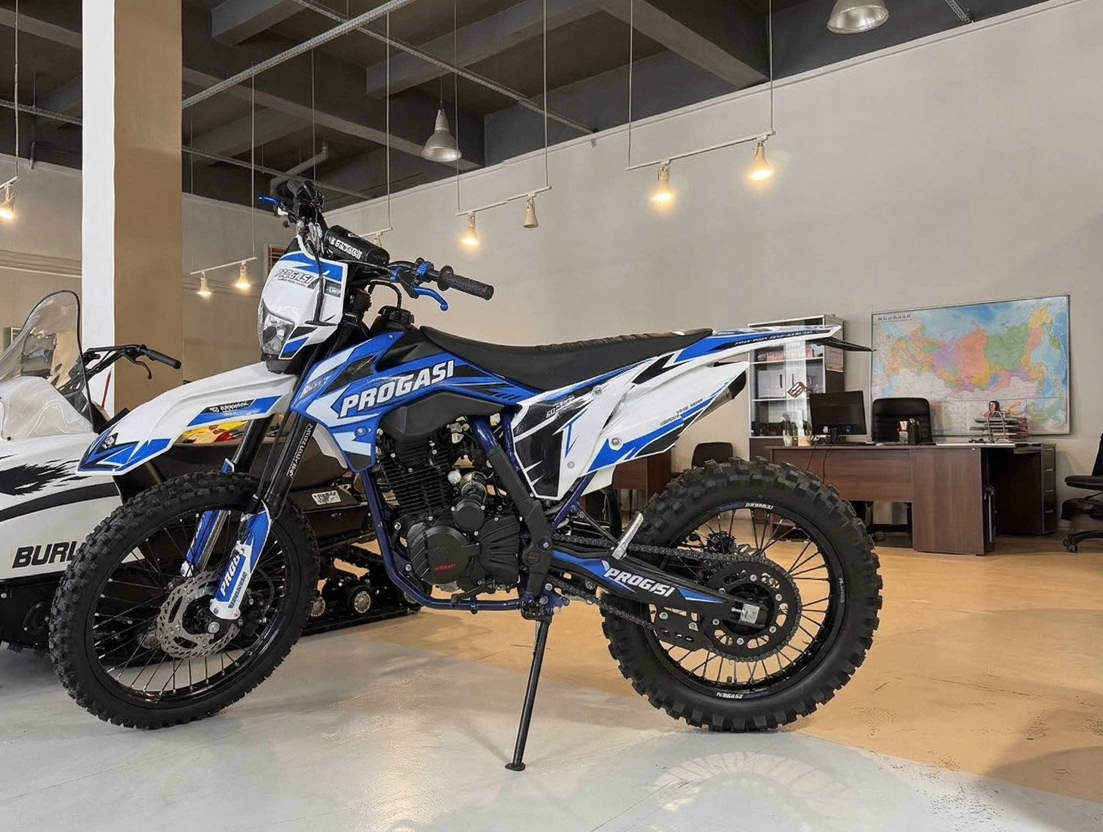 PROGASI Super Max 250 NG Blue/White — выбор продвинутых новичков и опытных райдеров. Европейский сертификат качества, заводское масло Shell 10W‑40, влагозащищённые разъёмы проводки и обработанные подшипники подтверждают: этот мотоцикл готов к любым приключениям!