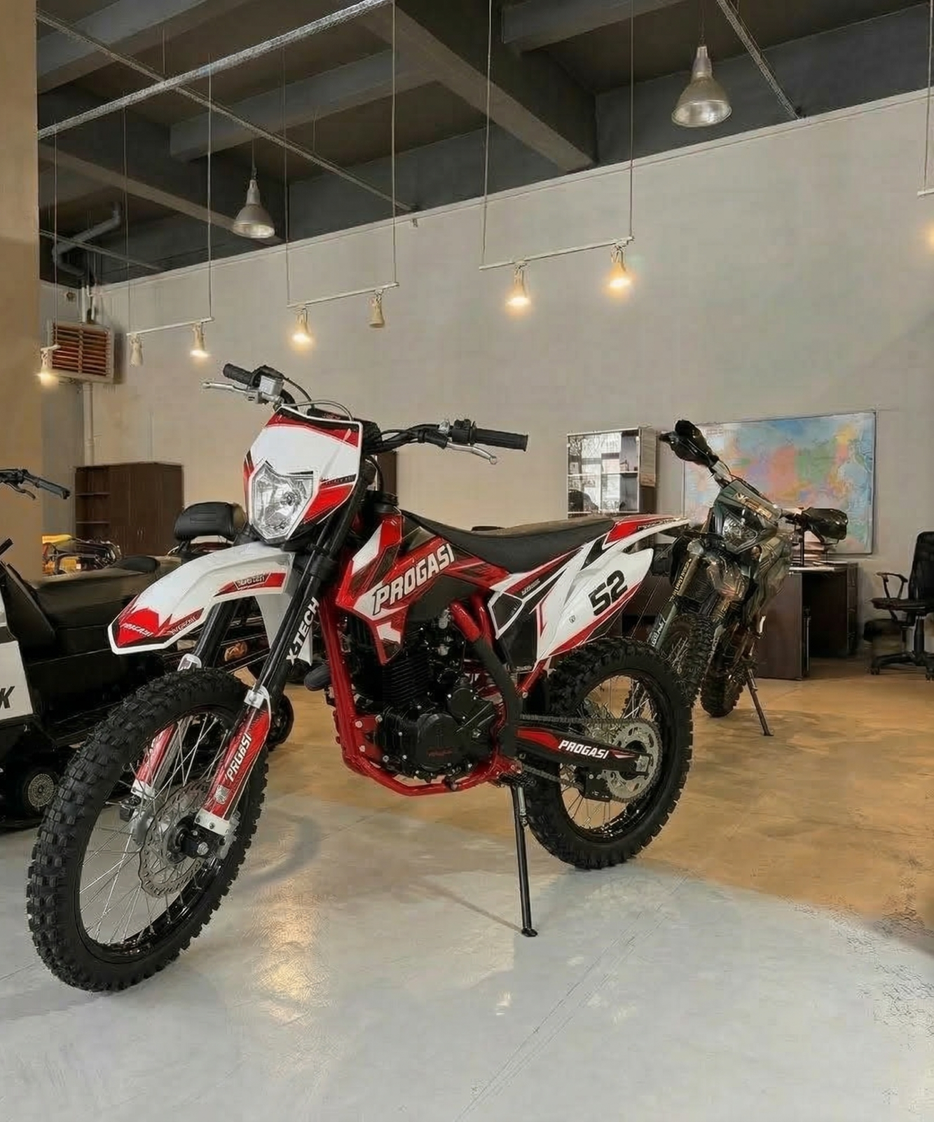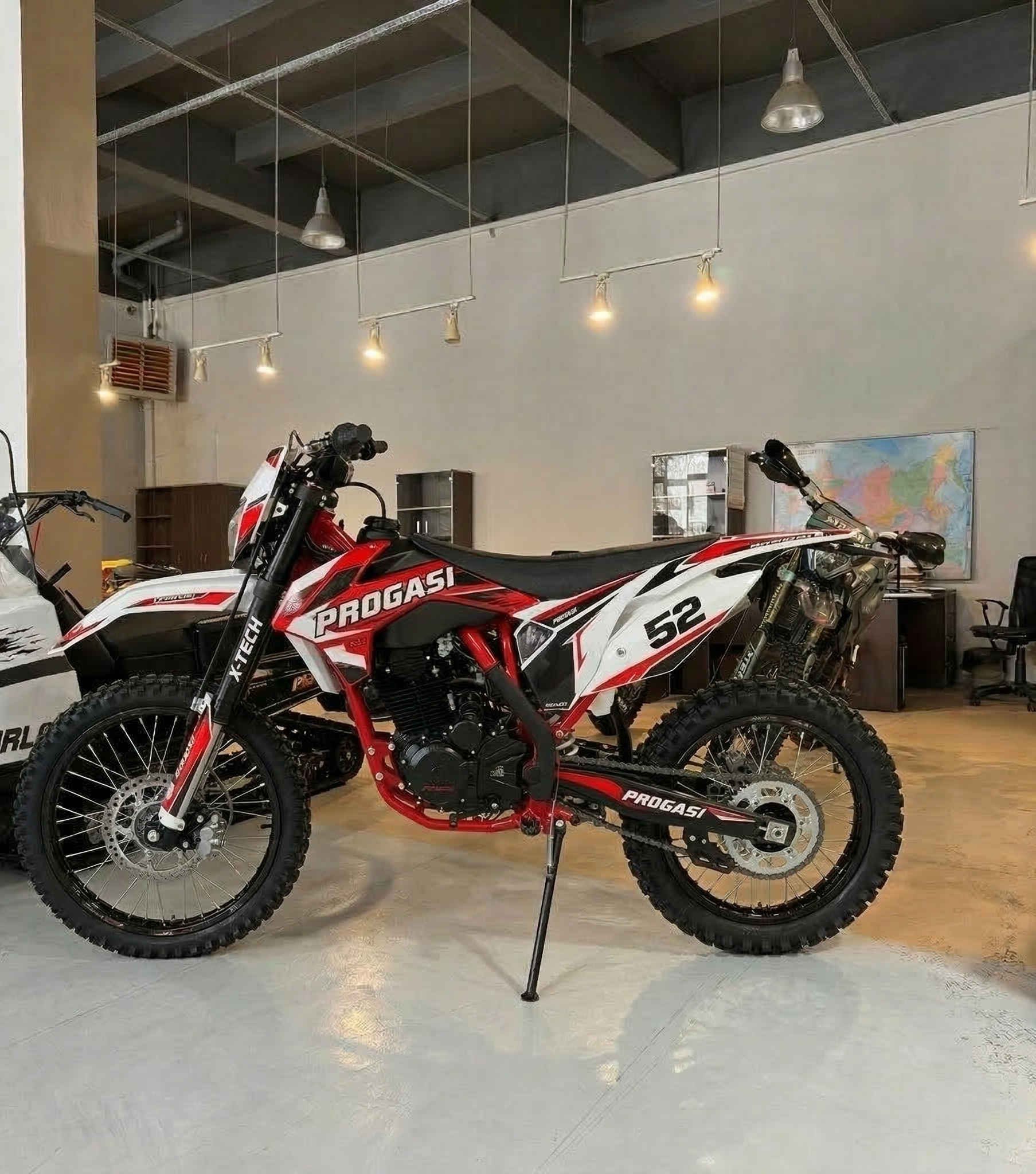 PROGASI Super Max 300 NG Red/White — выбор продвинутых новичков и опытных райдеров. Европейский сертификат качества, заводское масло Shell 10W‑40, влагозащищённые разъёмы проводки и обработанные подшипники подтверждают: этот мотоцикл готов к любым приключениям!