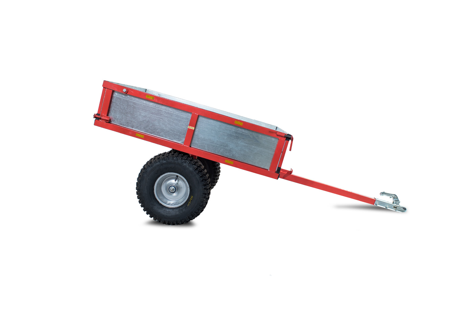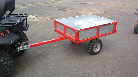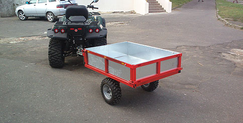Прицеп М1200 предназначен для перевозки грузов квадроциклом. Значительно расширяет возможности квадроцикла на охоте, рыбалке, сельхозработах. Максимальная кратковременная скорость 40 км/час, грузоподъёмность 400 кг. Рама платформы изготовлена из профильной трубы 40-40-2, борта 40-20-2, оцинкованный лист 1.2мм, дышло – профильная труба 50-50-2, колёсная балка 50-50-2, фирменное сцепное устройство KNOTT.